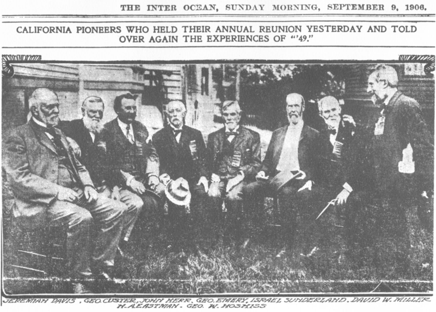 California Pioneers -- Jeremiah Davis, George Custer, John Herr, George Emery, Israel Sunderland, David W. Miller, H. A. Eastman, George W. Hoskiss