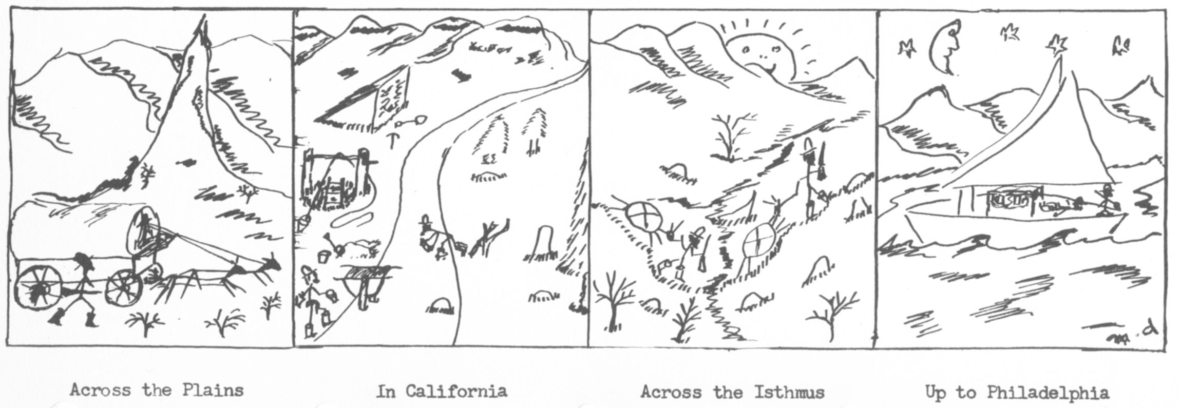 Drawing of Jeremiah's trip to California and back